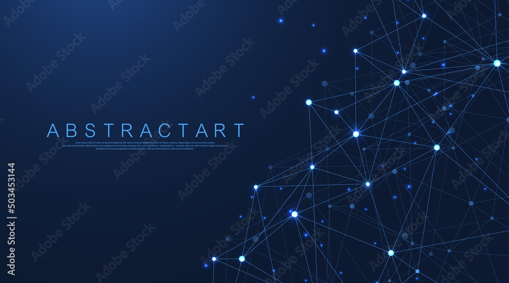 Poster : Technology abstract lines and dots connection background - connection digital data and big data conce