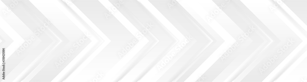 Poster : Technology banner design with white and grey arrows - abstract geometric vector background