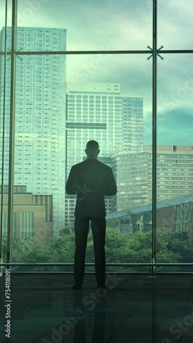 The watermark will not be included on Poster.: The businessman stands with his back in front of the viewer, 3d render -