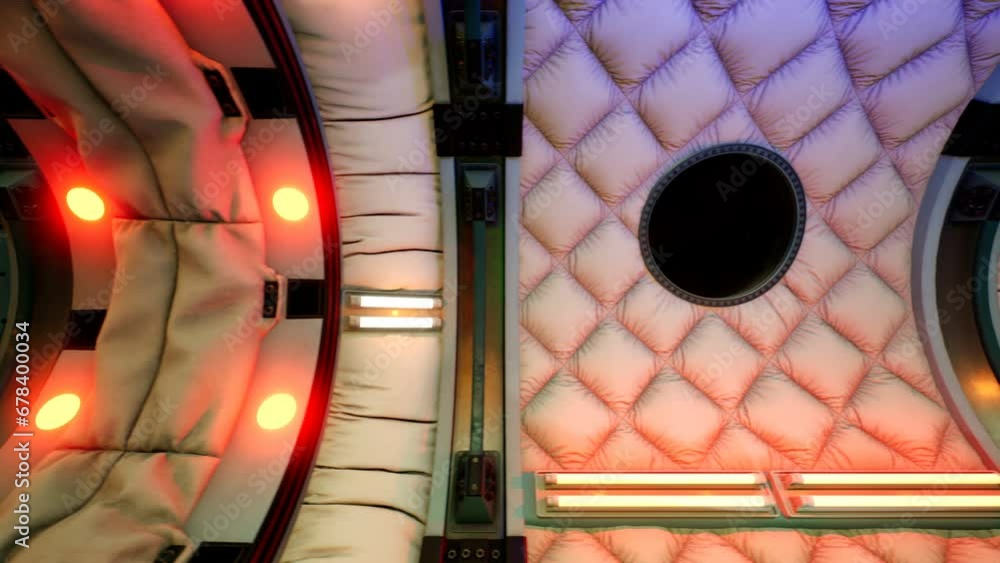 The watermark will not be included on Poster.: The camera smoothly navigates within the spacecraft module, generating an animation ideal for backgr