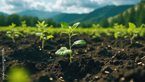 The watermark will not be included on Poster.: The concept of achieving net-zero emissions and carbon neutrality - a close-up view of soil in a natu