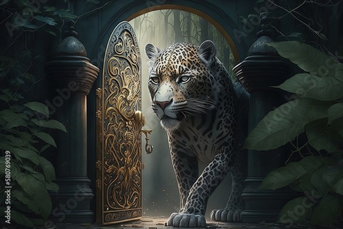 Poster the guardian at the gate: an unforgettable encounter with a fantasy jaguar generative ai