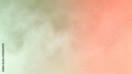 The watermark will not be included on Poster.: Thin mist dispersing subtly into a gradient light olive and coral backdrop, evenly lit to highlight