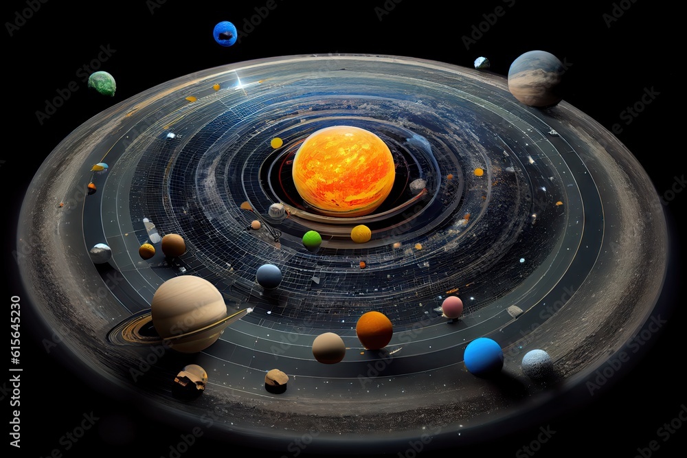 The watermark will not be included on Poster.: Tilt shift view of the solar system cosmic beautiful miniature - generative ai aig15 -