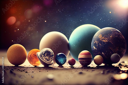 Poster : Tilt shift view of the solar system cosmic beautiful miniature - generative ai aig15 -