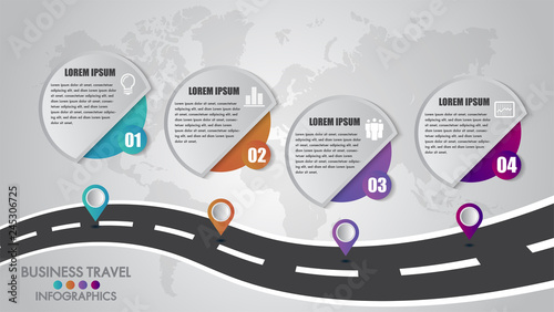 Poster : Timeline infographics template 4 options design with a road way and navigational pointers place for