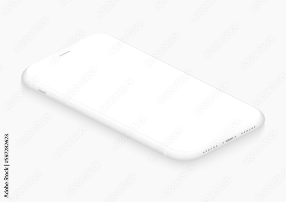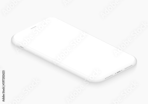 The watermark will not be included on Poster.: Totally soft isometric white vector smartphone - 3d realistic empty screen phone template for inserti