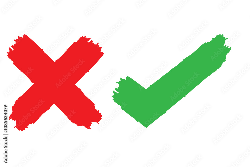 The watermark will not be included on Poster.: Two dirty grunge cross x and tick ok check marks in check boxes, hand drawn with brush strokes vecto