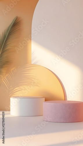 Poster two minimalist podiums are featured in a soft light setting - Posters Poster two minimalist podiums are featured in a soft light setting - Posters