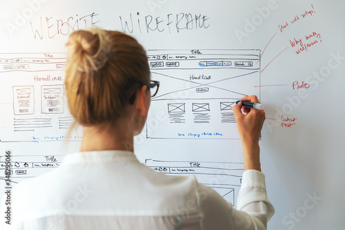 The watermark will not be included on Poster.: Ui ux designer drawing new website wireframe