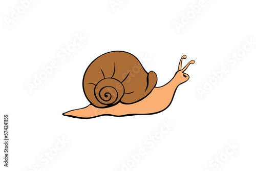 The watermark will not be included on Poster.: Vector color cute snail in flat style with spiral shell, side view, isolated - natural element design