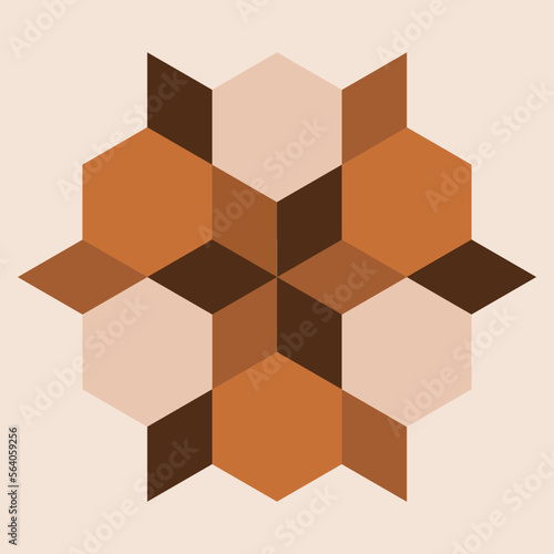 The watermark will not be included on Poster.: Vector graphic of a patchwork design in neutral colours - it is based on a hexagonal shape interspers
