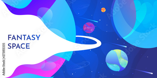 Poster vector illustration. horizontal space background with abstract shape and planets. web design. space