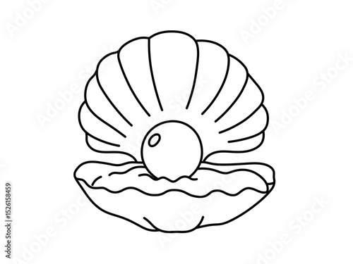 The watermark will not be included on Poster.: Vector isolated open oyster shell with pearl inside colorless black and white contour line easy draw