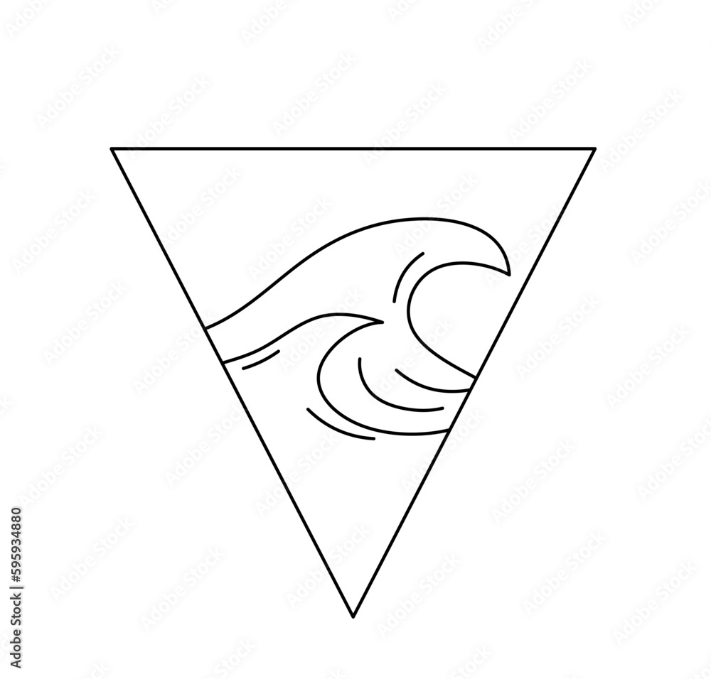 The watermark will not be included on Poster.: Vector isolated waves inside triangle shape colorless black and white contour line easy drawing