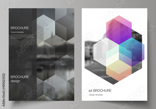 The watermark will not be included on Poster.: Vector layout of a4 format cover mockups design templates with abstract shapes and colors for brochu