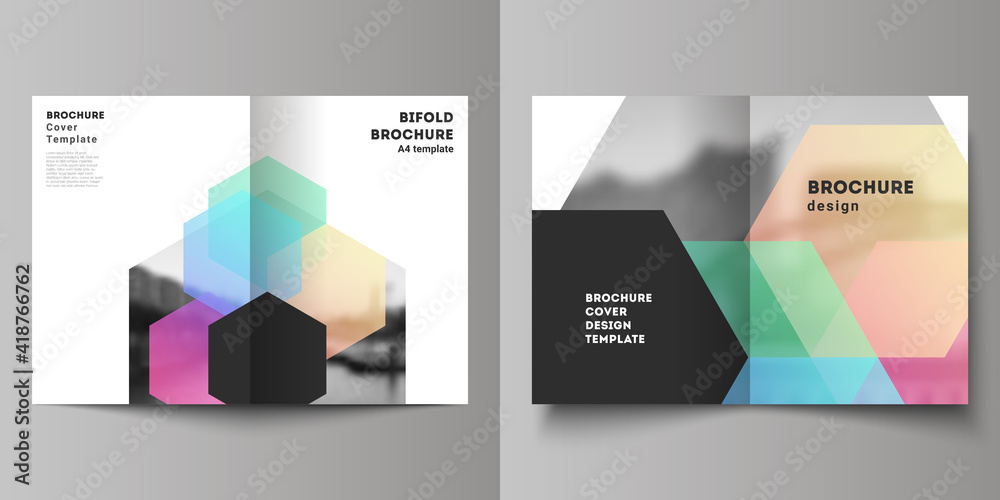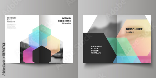 The watermark will not be included on Poster.: Vector layout of two a4 format cover mockups design templates with abstract shapes and colors for bi