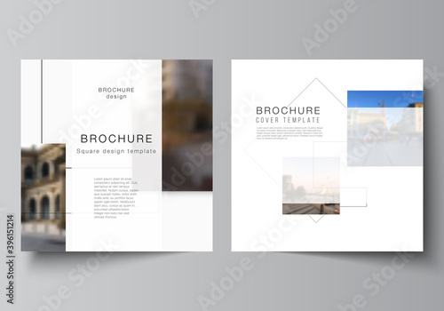 Poster : Vector layout of two square format covers design templates with geometric simple shapes, lines and p