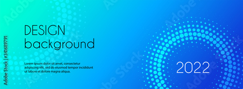 Poster vector long banner template. abstract blue gradient background with halftone circles