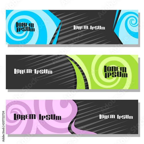 Vector set of horizontal futuristic banners, 3 layouts for website headers with spiral abstract pattPoster