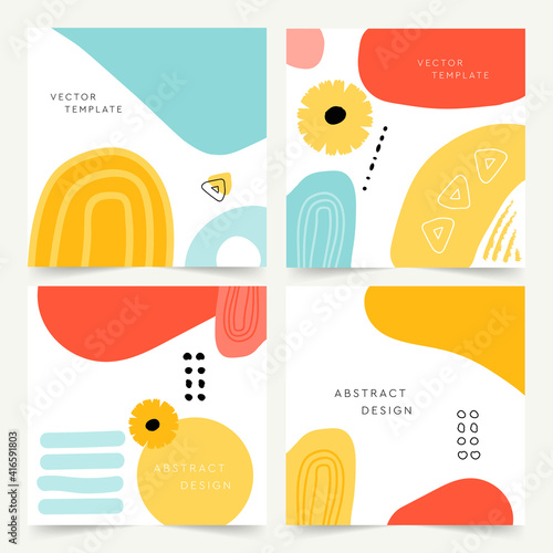 Poster vector - set of modern design template with abstract organic shapes in bright colors. minimal square