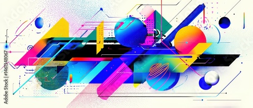 Poster : Vibrant abstract geometric art with bold colors and dynamic shapes, creating a modern and energetic