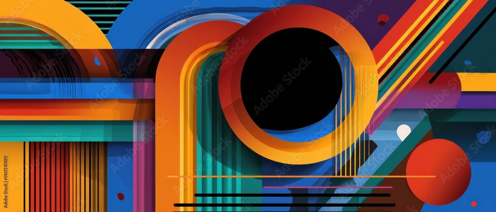 The watermark will not be included on Poster.: Vibrant abstract geometric background with bold shapes and bright colors, creating a modern and dyna