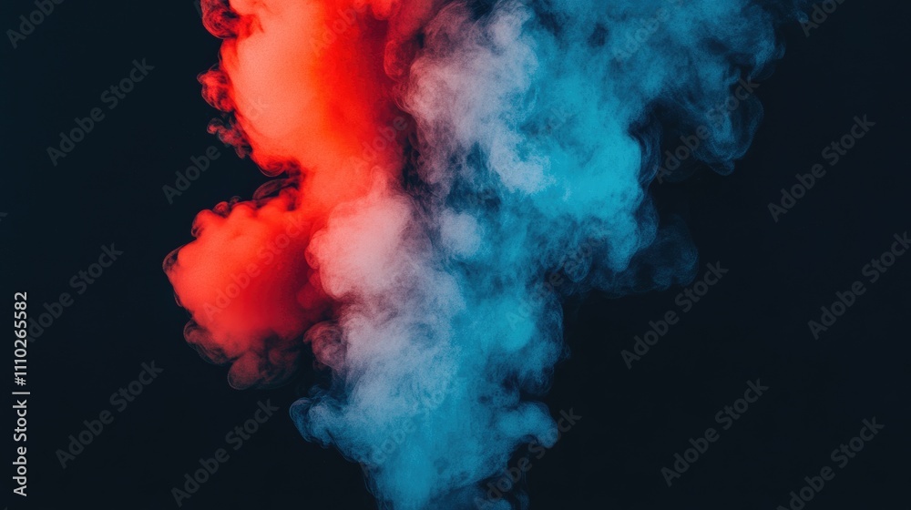 The watermark will not be included on Poster.: Vibrant abstract smoke patterns in red and blue against a dark background creating a mesmerizing vis