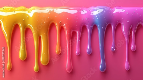 The watermark will not be included on Poster.: Vibrant colorful paint drips on gradient background with glossy texture