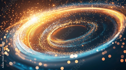The watermark will not be included on Poster.: Vibrant lines and dots come together to create a digital abstract design that showcases glowing effe