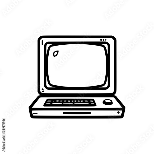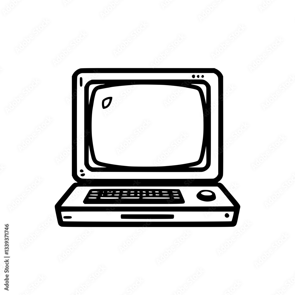 The watermark will not be included on Poster.: Vintage computing: an illustration of an older-style portable computer reminiscent of early technolo