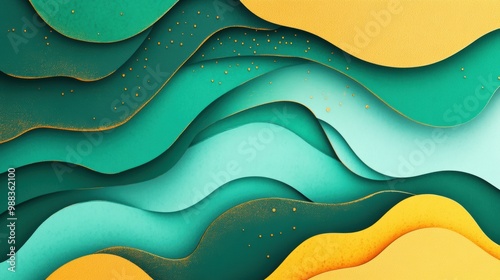 Poster waves of green and gold flow gracefully, creating an abstract pattern that suggests tranquility and  - Posters Poster waves of green and gold flow gracefully, creating an abstract pattern that suggests tranquility and - Posters
