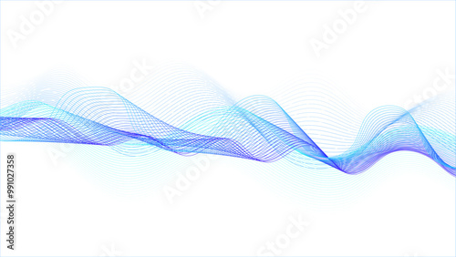 Poster wavy flowing curve pattern by colorful gradient blue purple on white background. abstract white back