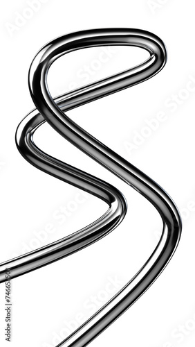 The watermark will not be included on Poster.: Wavy squiggle line shape isolated - futuristic metal curve design element 3d rendering