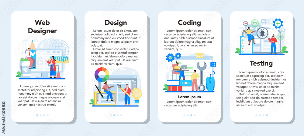 The watermark will not be included on Poster.: Web design mobile application banner set - presenting content on web pages