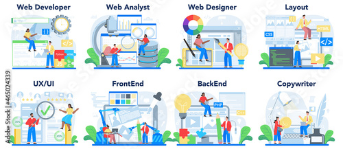 The watermark will not be included on Poster.: Web development concept set - creating and presenting content