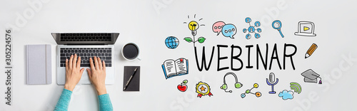 The watermark will not be included on Poster.: Webinar with person using a laptop computer