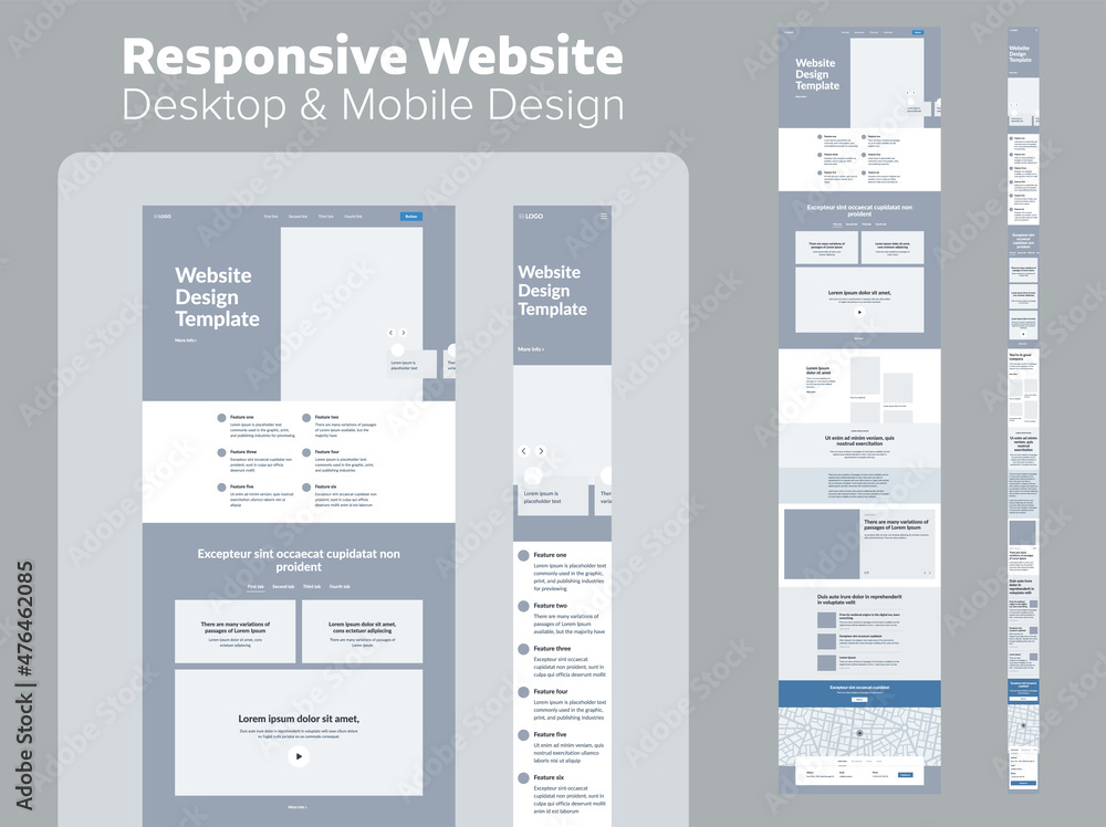Website design - responsive desktop and mobile wireframe - landing page template - Poster