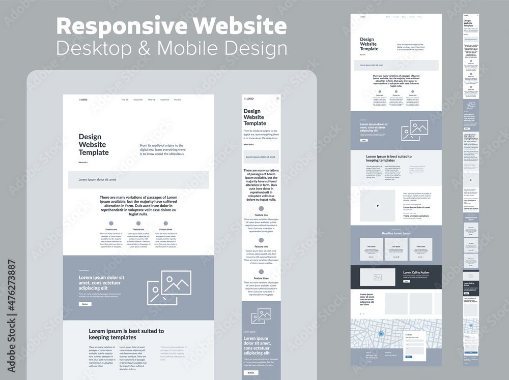 Website design - responsive desktop and mobile wireframe - landing page template - Poster
