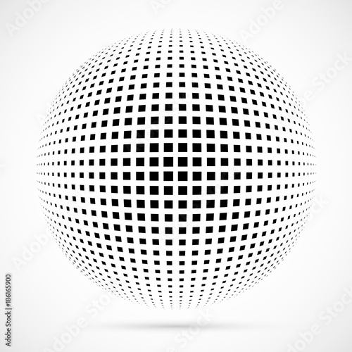 Poster white 3d vector halftone sphere.dotted spherical background.logo template with shadow.square dots is