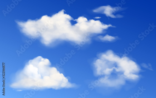 Poster : White clouds in blue sky - vector realistic fluffy different shapes clouds in clean heaven in summer