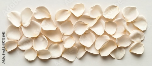 The watermark will not be included on Poster.: White flower petals arranged on a light background with copy space for text insertion