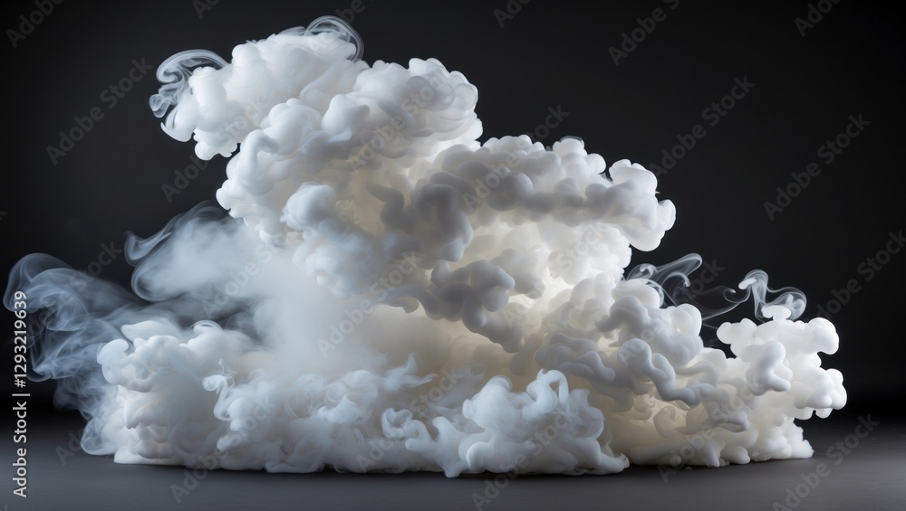 The watermark will not be included on Poster.: White smoke billowing in artistic patterns against a dark background creating a dramatic and etherea