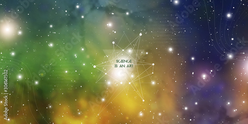The watermark will not be included on Poster.: Widescreen futuristic technology illustration in front of outer space background with copy space - cy
