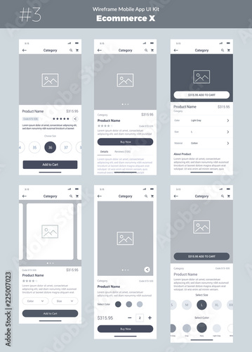 Wireframe kit for mobile phone - mobile app ui, ux design - new os ecommerce product - category, name oPoster