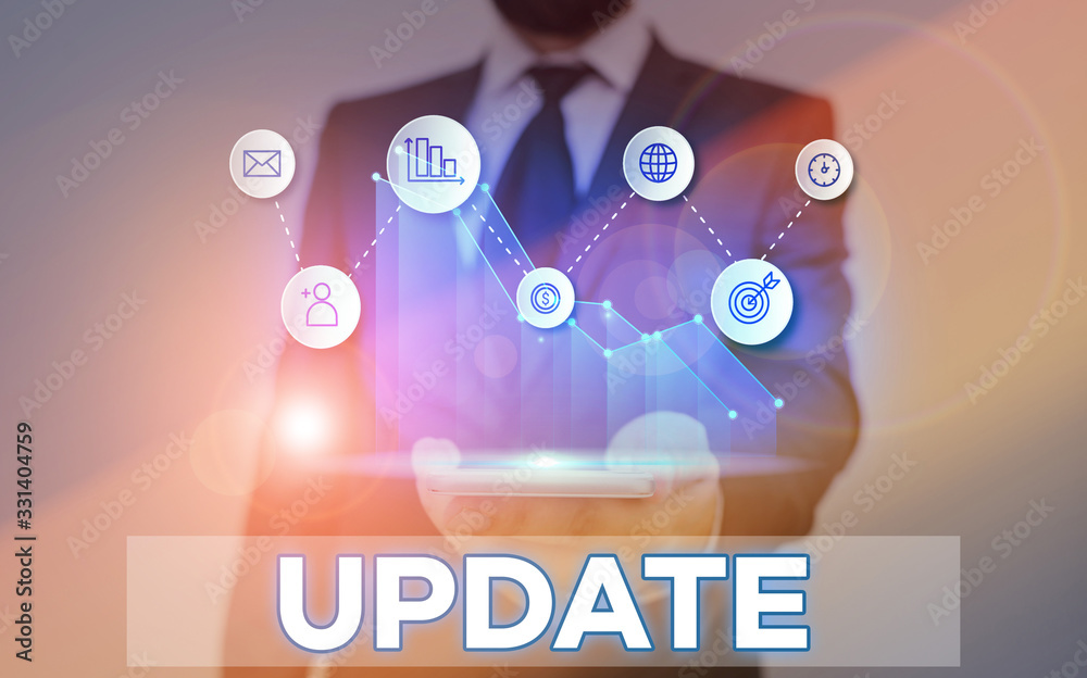The watermark will not be included on Poster.: Word writing text update - business photo showcasing make something more modern or up to date like so