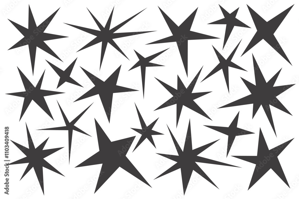 The watermark will not be included on Poster.: Y2k star shapes - vector glyph icons of abstract sparks and shiny irregular flash burst - blings and t