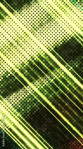 Poster yellow background. motion.bright blots with stripes in the animation that fly in different direction