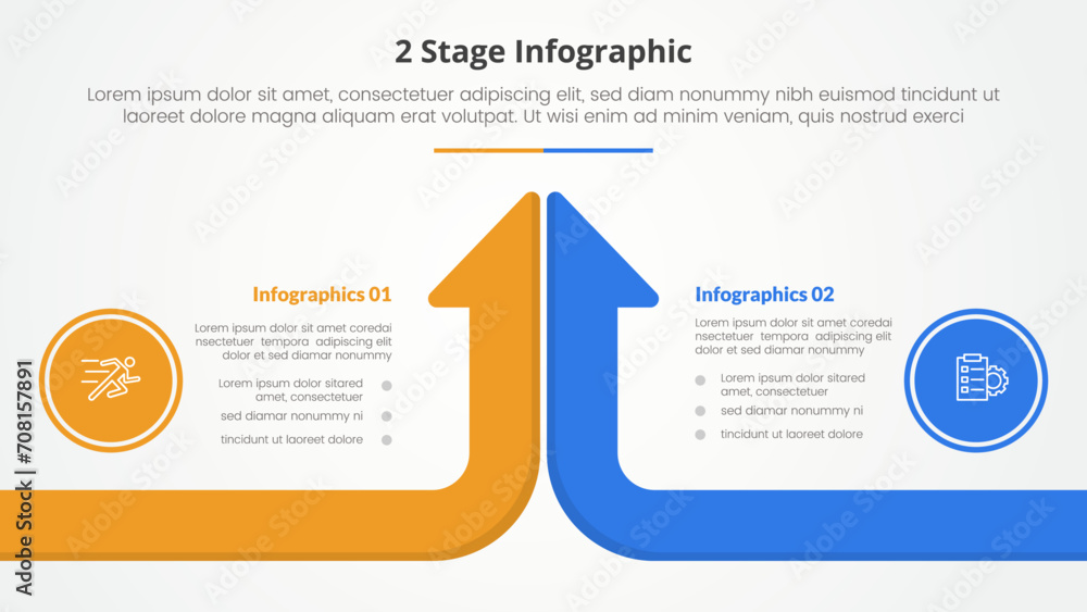 2 points stage template for comparison opposite infographic concept for slide presentation with longSticker