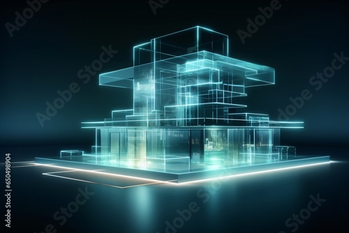 Sticker 3d hologram model of a building for building design and architecture in the future